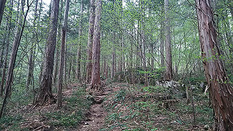 整備された遊歩道があり、木曽らしい美林の新緑もまた素晴らしい。