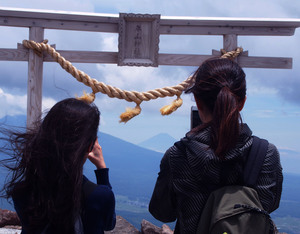 This is Japan!!と言える、車山山頂の神社の鳥居の向こうに見えた富士山。
