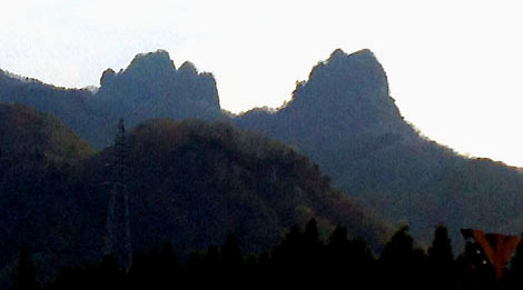 長野県から上信越自動車道で群馬県に入ると見える妙義山。