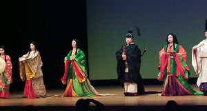 夕闇に浮かび上がる松本城のシルエットが、和太鼓や尺八などの演奏とぴったり合う、素晴らしいステージです。海外からも、これを目当てに観光客が来るようです。