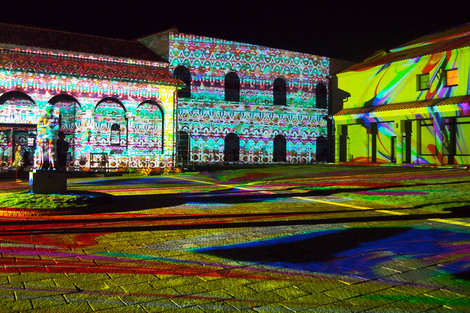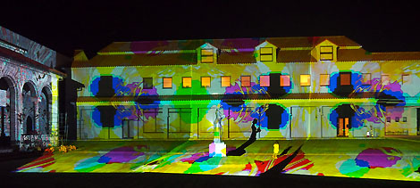近代美術館の壁と前庭に投影したため、前に松本城でやった時とはまったく別の趣。