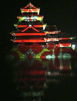 松本城にアートを投影するイベント「デジタル掛け軸@松本城」の1日目が終わりました。