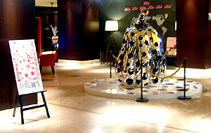 ブエナビスタの1階に、草間弥生のメタルのパンプキン「宇宙にとどけ、水玉かぼちゃ」が展示されていた。