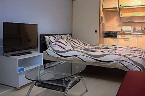 写真のようなマンションの1室を、郵便受けにある鍵で空けて入って使い、ホストとはまったく顔を合わさず。
