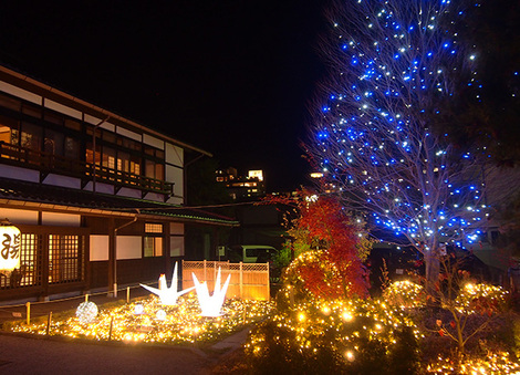 今年度も松本・浅間温泉の「ホットプラザ浅間」前に、11月~4月まで和風のイルミネーションを設置しています。