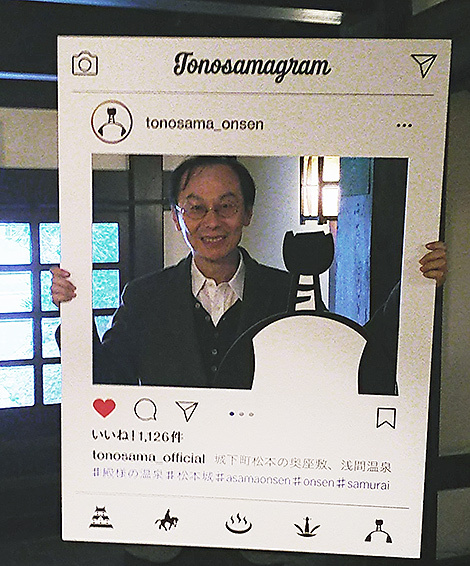 浅間温泉の宿にHPの打ち合わせで伺ったら、InstagramをもじったTonosamagramの撮影ボードがありました。