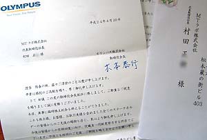 それも、渦中のオリンパスからで、2日目は、就任したばかりの取締役会長からのサインも入った挨拶状。