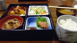 以前ランチに行ってみたら、メニューは日替わり松花堂弁当750円、それのみというシンプルさが気に入りました。