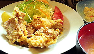 ランチ営業しているので行って、「信州産鶏の唐揚げ定食」を食べてみたら、美味しさにビックリ。