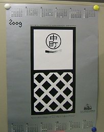 会社の打ち合わせスペースにかけている中町商店街組合の今年のカレンダー。目を引くデザインで、来社する人たちの間で好評です。