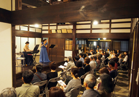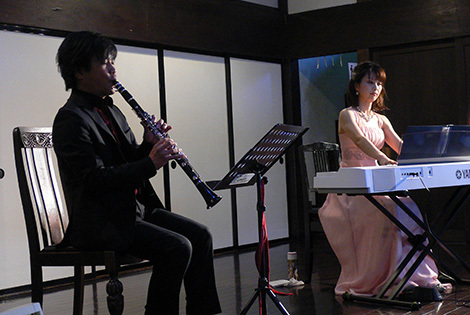 「クラリネット@蔵」というタイトルで、木造の蔵に木管楽器のクラリネットとピアノの音色が響きました。