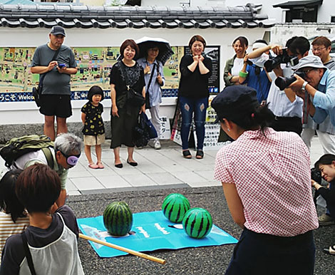 松本・中町通りが歩行者天国となり、それに合わせたイベントでスイカ割りをやりました。