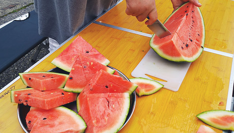 それも「日本一甘い」波田のスイカで、割ったスイカをふるまったのを一切れ食べたら、確かにメチャ甘かった。今年は雨が多いのに、スイカはちゃんと甘くできているようです。