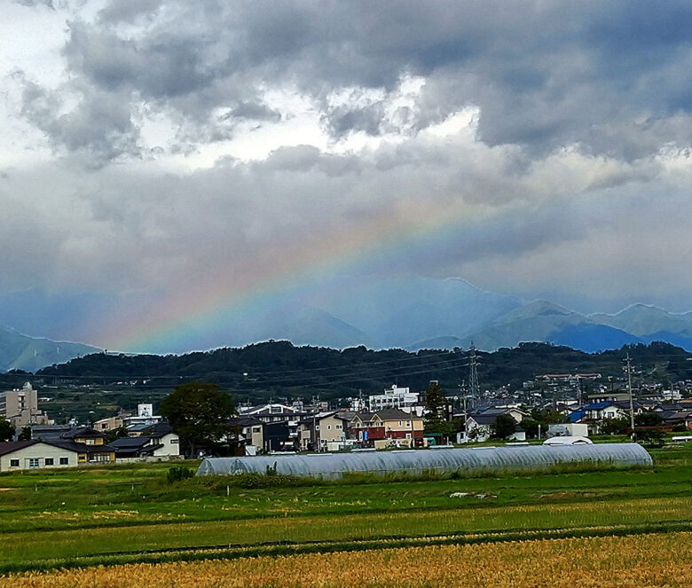 虹は、午後に東の空に見えることがほとんどで、朝に西の空、北アルプスの方角に見えたのは初めてでした。