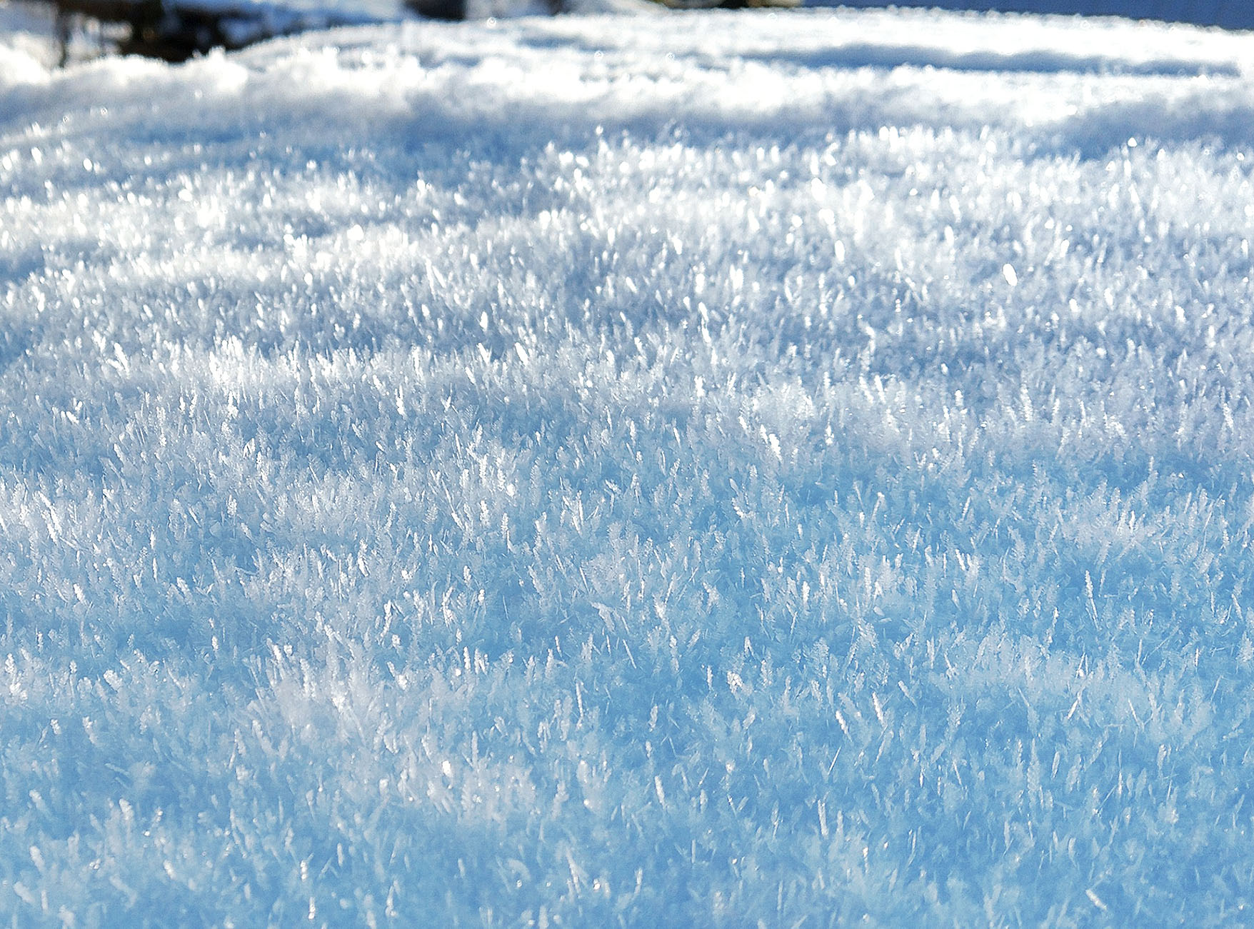 最低気温-8.5 ℃の朝、昨日少し積もった雪が結晶に成長して、芸術作品になっていました。