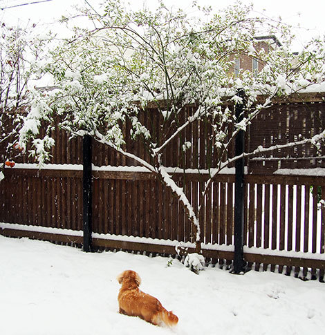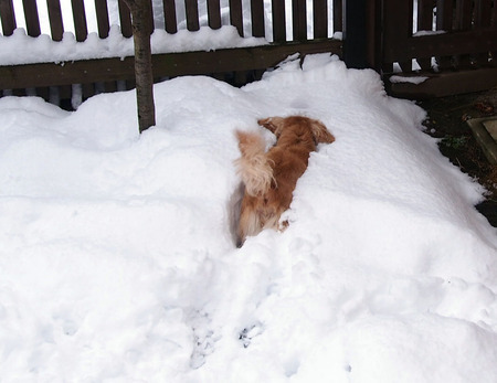 松本は積雪22cmというけど、30cmは積もったうちの庭は、犬にとってはWonderland。