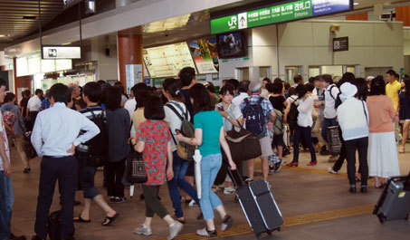 帰省客・登山客・観光客が入り交じり、みんな楽しそう