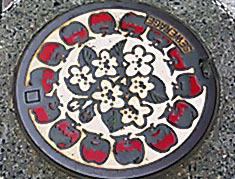 下を見て歩かないと気づかないマンホールのふたのデザイン。