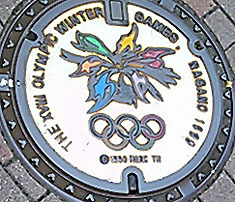 長野市のマンホールは、一つはオリンピックのデザイン、もう一つはリンゴのデザインで、どちらも綺麗。