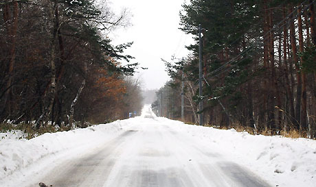 寒いときに寒い写真で恐縮ですが、雪の中の1本道です。
