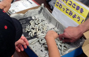 国内で唯一、今も手でシルクの糸取りをしている宮坂製糸所の方が来て、実演と希望者による体験もやっていました。