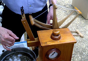 クラフトフェアまつもとでやっていた「蚕の糸取り」。