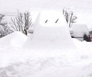 ワイパーやドアミラーが出ていなかったら、車だとわからない雪の固まりとか。