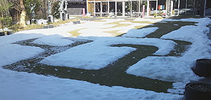 松本市美術館の中庭に、大雪の時に作られた雪の迷路の残骸が、アートか遺跡のように残ってました。