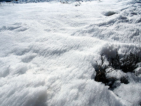 雪が凍ったときに風が吹いていて、波のようになったのでしょうね。
