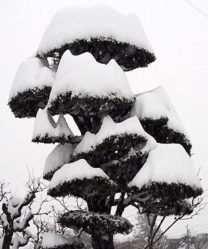 何でもない松の木は、雪が乗っかってキノコのオブジェに。