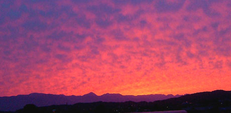 西の空が一面真っ赤。