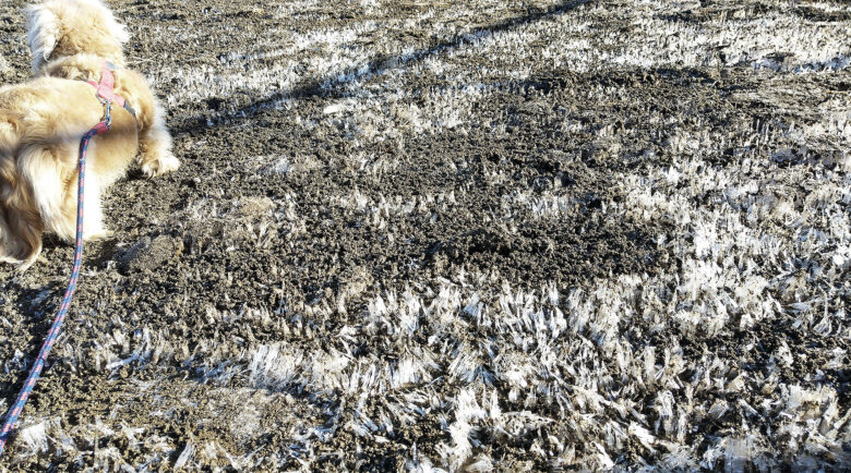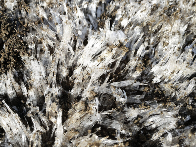 霜柱は気温が低くても、地面に適当な水分があるなど条件が整わないとできないので、見つけるとラッキーな気分です。
