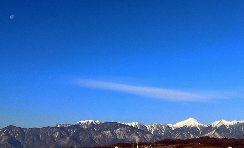 そして朝になると、山に沈む「有明の月」が雪を頂くアルプスとマッチして、風景画の世界が見られます。