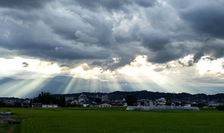 信州の夏の夕方は、刻一刻と変わる天空のショーを見せてくれます。
