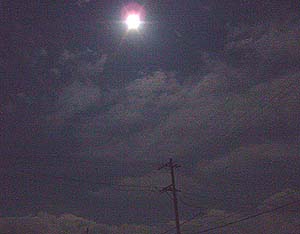 写真はお日様と青空ではなく、さっき撮影した月と空と雲です。