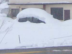 聞きしに勝る雪だらけで、あちこちに除雪した雪の山やら雪の壁やら雪に埋もれた車やらがあり、村全体が雪に埋もれてる感じ。