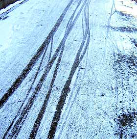 昨日は夜に雪が少しだけ降り、そんな朝は道は凍結してツルツル滑り、自転車は細心の注意を払わないと横滑りする。