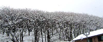 車でお客さんの所に行った帰り、弘法山の一面の桜の木に雪が積もって、あまりに美しくて写真に撮りました。