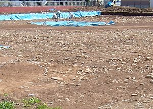 通勤途中の公園予定地で、遺跡の発掘をやっているのが見られる。