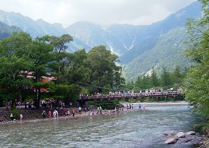 上高地では、温度計は24℃を差していて、さすが涼しかった。松本の最高気温が35℃台だったので、10℃違います。