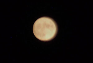 今は曇っていますが、東の山から月が出たときは晴れていて感動的でした。月の光ばかりが明るすぎて写真に撮るのが難しい。