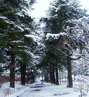 信州に多い杉の木などの針葉樹に雪が積もると、クリスマスツリーのようで綺麗です。
