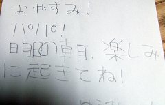 家族はもう寝ていたが、テーブルに子どもの書いた写真… 続きを読む