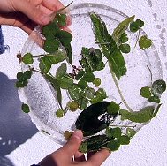 なので、枯れ葉やクローバーの葉っぱを、植木鉢に敷くお皿に入れて、"氷中葉"を作った。