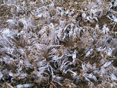 子どもの時、大阪で、「霜柱」というものが一目見たくて、「科学と学習」か何かの雑誌に書いてあった「庭の土に水を撒いておいたら霜柱ができる」というのをやって見たが、翌朝、全くできなかった。