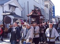 明治20年代に作られて100年以上の歴史のある中町のみこしをかつぐのに、楽太郎が参加した。