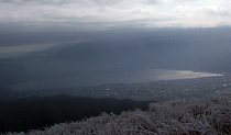 昨日、高ボッチ山頂から見た諏訪湖はほとんど凍っていなかった。