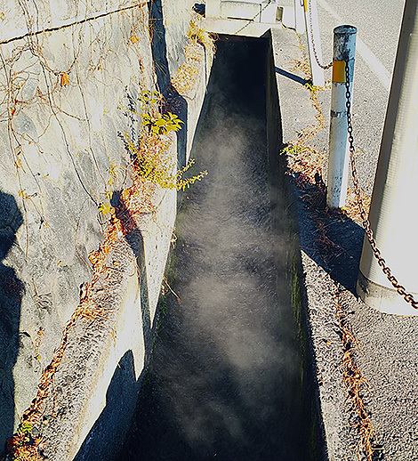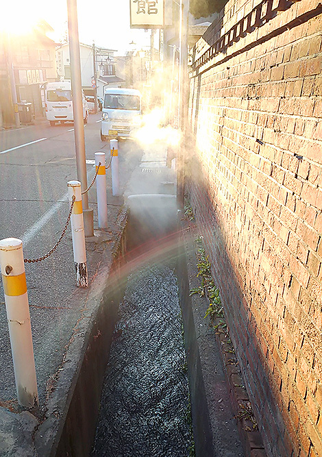 浅間温泉でも、源泉に近い一部の側溝でしか見られません。