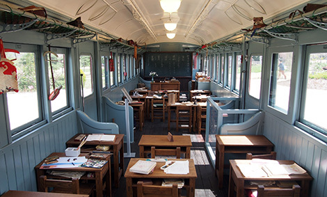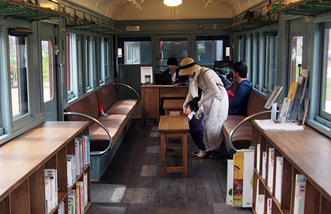 「電車の教室」の一部は村の図書館の分室になっていて、奥に、ちゃんと司書の方も座っています。