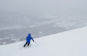 八方尾根は、長野オリンピックの時の滑降コースで、上級者に人気があります。